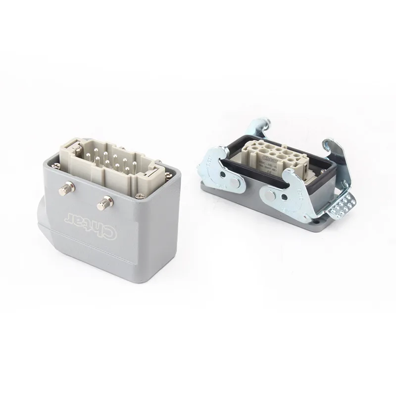 این کانکتورهای CHTAR 10 Pin AG Heavy Duty بر اساس یک اصل ماژولار طراحی شده است. این شامل یک محفظه سوکت ماده است که می تواند پیکربندی های مختلف درج با 10 شماره تماس زن یا مرد را در خود جای دهد. از اهرم قفل دوگانه برای محافظت از کانکتورهای داخلی ساخته شده است.