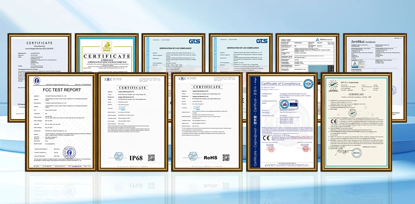 فرآیند کنترل کیفیت (QC) ما برای کانکتورهای سنگین، یک سیستم جامع است که برای اطمینان از قابلیت اطمینان، دوام و ایمنی در کاربردهای صنعتی و حمل‌ونقل درخواستی طراحی شده است. این سیستم بررسی‌های دقیق را در هر مرحله، از طراحی تا حمل و نقل نهایی، یکپارچه می‌کند. ما کانکتورهای سنگین را پس از بازرسی عرضه می کنیم.