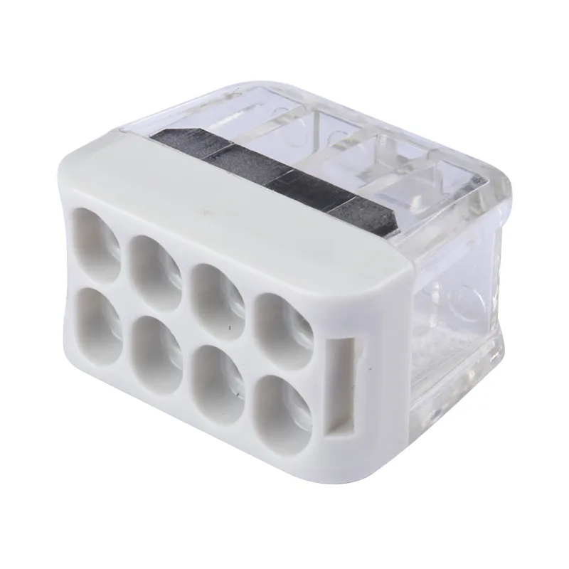 2P 3P 4P 5P 6P 8P Feed-through Wire کانکتورهای سریع بدون اهرم برای روشنایی و اتصال سیم های پریز و دوشاخه استفاده می شود. اتصالات سیم سریع یک محصول اتصال سیم ایمن است، تعمیر و نگهداری ما برای صرفه جویی در زمان کار و هزینه نیروی کار آسان است.